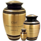 The Black and Brass Striped Cremation Urn is made of solid brass. This simple yet classy urn is the perfect way to honor a faithful pet and may be engraved to create a unique pet memorial. The threaded lid keeps the urn closed securely.